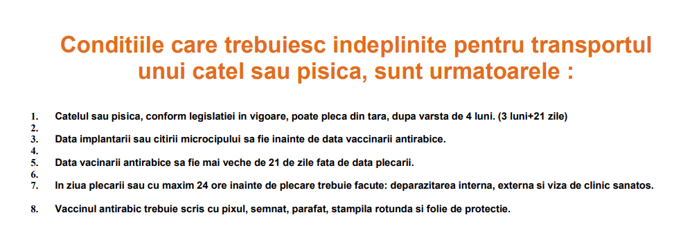Da click pe butonul de mai jos si vezi conditiile necesare pentru efectuarea unui transport al unui caine sau a unei pisici